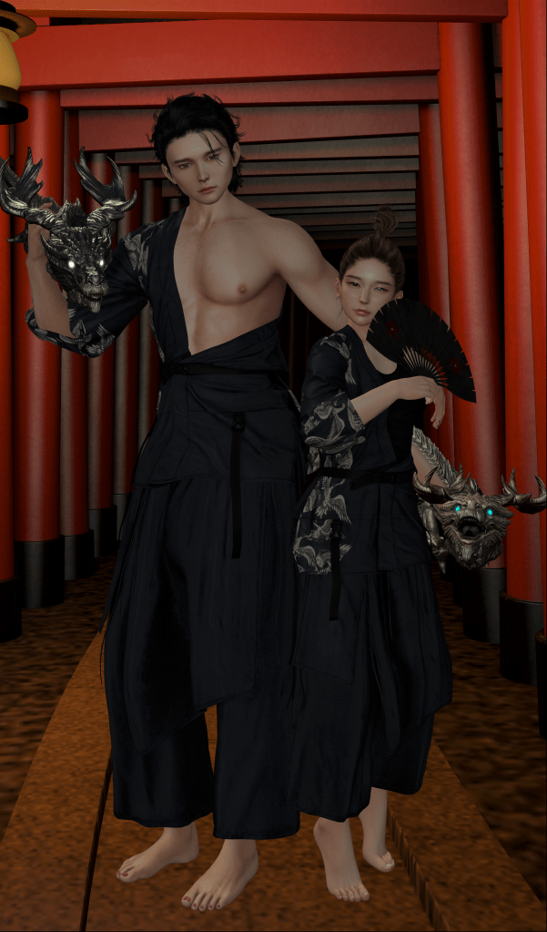 Marvel at our dragons! Neo Japan has been a great event for us to explore new things. It’s one of the events we look forward to, because there are so many good products. One product caught our eye and it was clothing from Toksik. Isolate top and bottom were perfect for us, because they were pieces that could be used for matching. We liked the crane design and decided to do a picture. Chibi was able to come up with something mystical, and the picture came out perfect! Dragons added in the final exclamation point to the picture, and the selection of the backdrop matched the overall theme of the picture (Thumbs up to Chibi!).